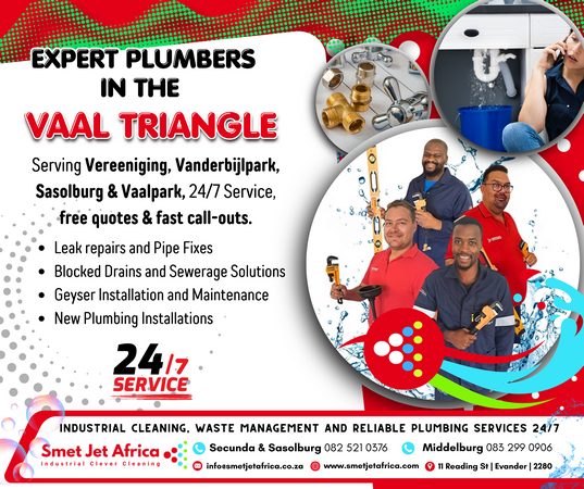 At Smet Jet Plumbing, we’re proud to serve the communities of Secunda, Sasolburg and Middelburg with reliable, professional plumbing solutions. With years of hands-on experience, our team is dedicated to providing fast, efficient service — whether it’s an urgent callout or routine maintenance. We specialize in emergency plumbing services, geyser repair and installation, and drain cleaning, ensuring your home or business runs smoothly around the clock. Our technicians are fully qualified, equipped with the latest tools, and committed to delivering quality workmanship on every job. At Smet Jet Plumbing, we believe in honest service, transparent pricing, and customer satisfaction above all else. When you call us, you can count on prompt response, expert advice, and lasting results.