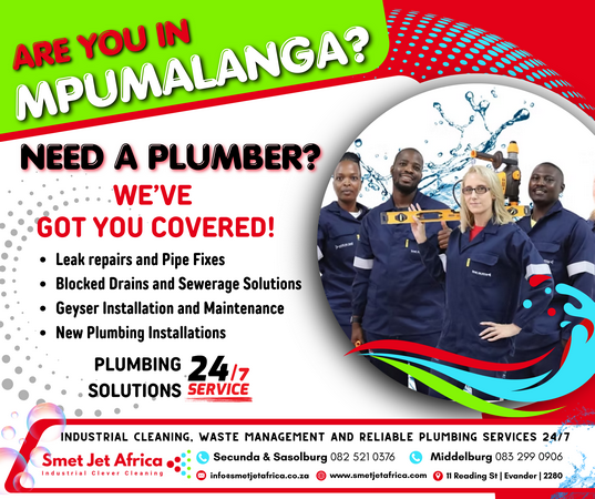 At Smet Jet Plumbing, we’re proud to serve the communities of Secunda, Sasolburg and Middelburg with reliable, professional plumbing solutions. With years of hands-on experience, our team is dedicated to providing fast, efficient service — whether it’s an urgent callout or routine maintenance.