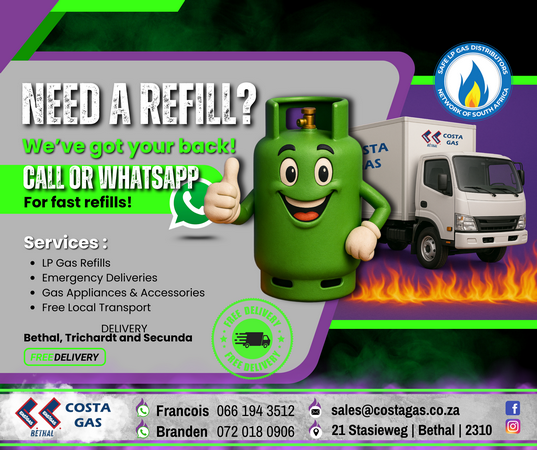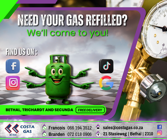 At Costa Gas, we believe in more than just delivering gas — we deliver peace of mind. Our friendly team ensures fast, efficient, and free delivery to your doorstep, so you never have to worry about running out of gas when you need it most.